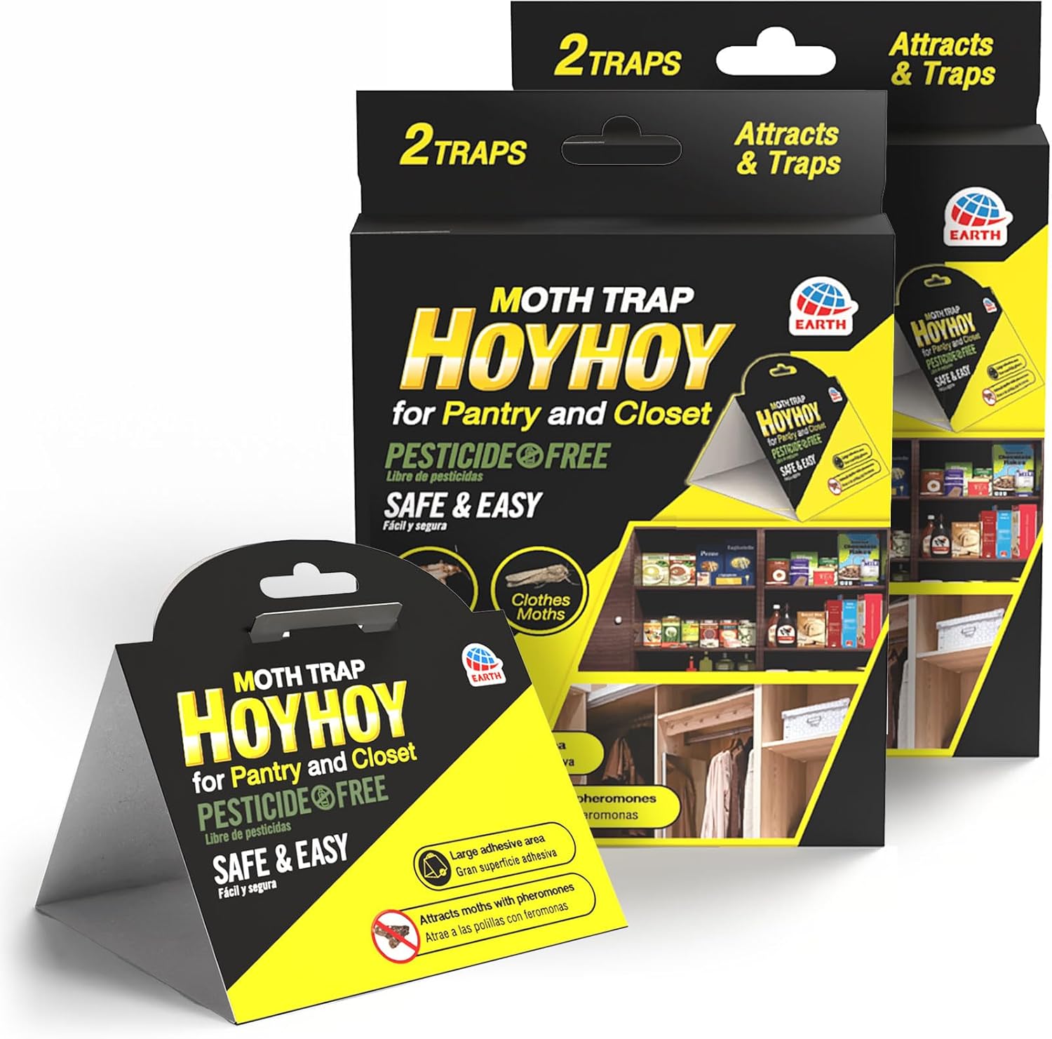 HOY HOY Moth Trap 2 Packs (4 Traps) Pheromone-Infused Glue Traps