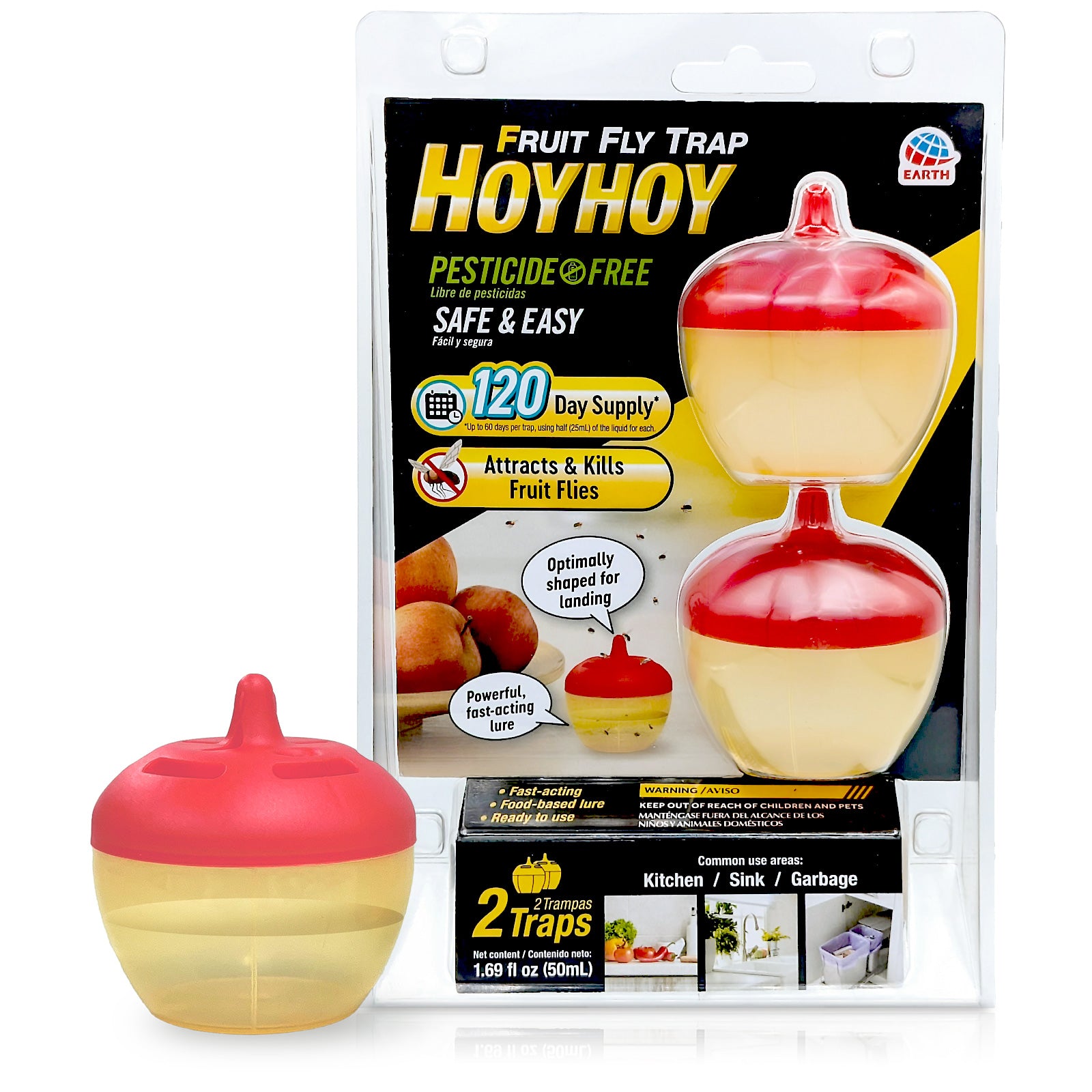 HOY HOY Fruit Fly Traps (2 Traps) Attracts & Kills Fruit Flies, 120-Day Supply