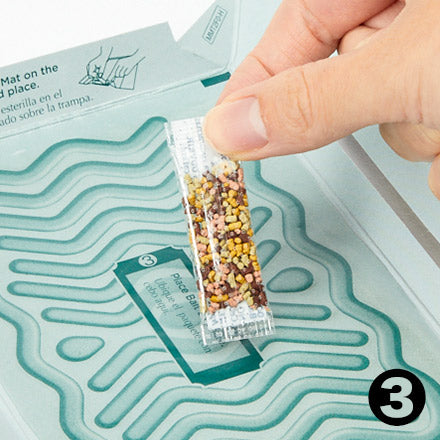 Remove the Bait Bag from the foil packet. Place it transparent side up. (Do not open the bait bag.)